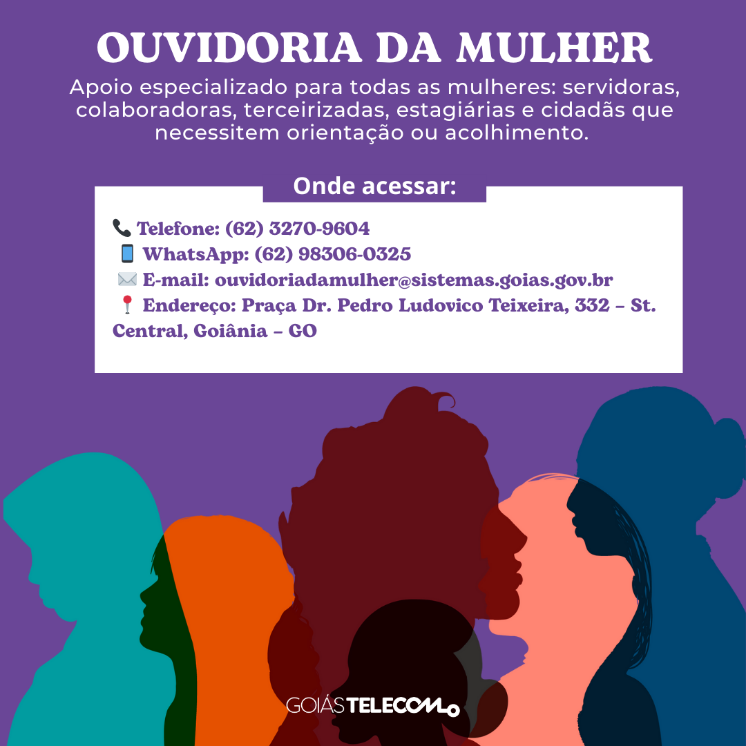 A GOIASTELECOM reforça seu compromisso com um ambiente de trabalho saudável, respeitoso e seguro para todas as mulheres. Por isso, queremos apresentar (ou relembrar) um canal essencial de apoio: a Ouvidoria da Mulher, da Secretaria de Estado de Desenvolvimento Social (Seds).